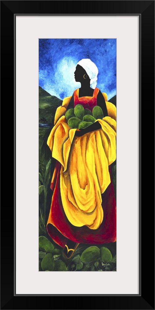 <p>Contemporary painting of a woman collecting avocados.</p>