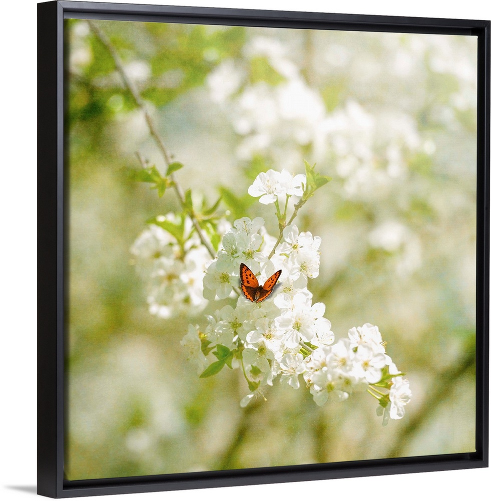 <p>A close-up butterfly in the spring on a cherry tree</p>