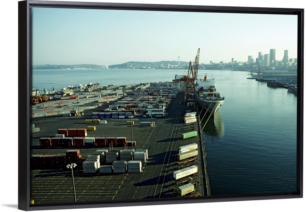 <p>Seattle Docks waterfront; container shipping, elevated view</p>