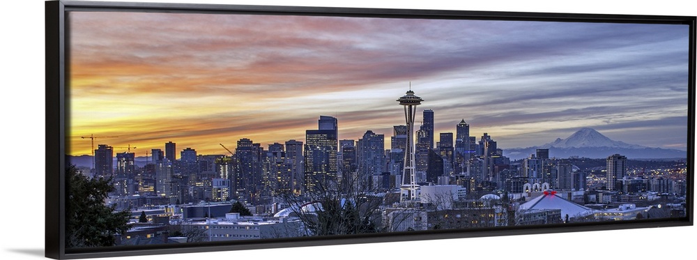 <p>Seattle Skyline And Mt Rainier As Seen From Kerry Park At Sunrise</p>
