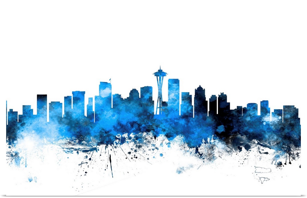 <p>Contemporary piece of artwork of the Seattle skyline made of colorful paint splashes.</p>