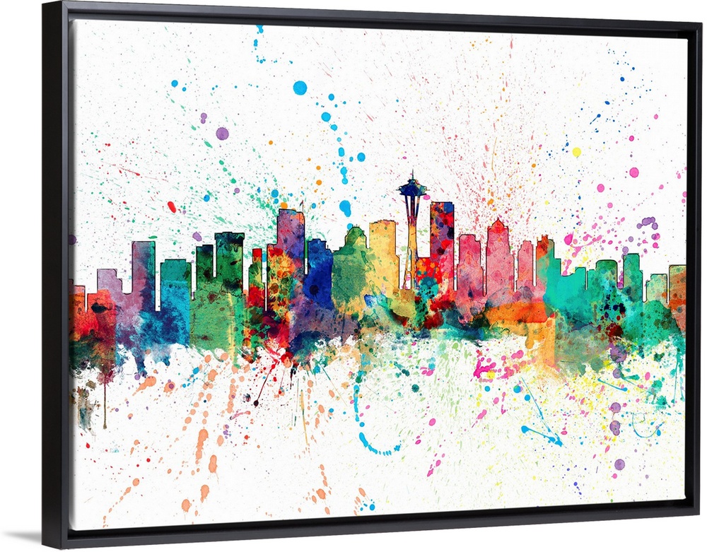 <p>Wild and vibrant paint splatter silhouette of the Seattle skyline.</p>
