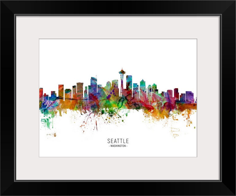 <p>Watercolor art print of the skyline of Seattle, Washington, United States.</p>
