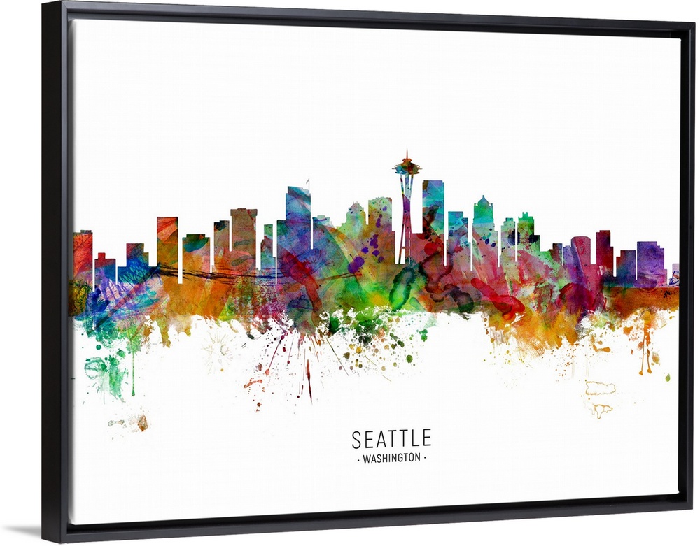 <p>Watercolor art print of the skyline of Seattle, Washington, United States.</p>