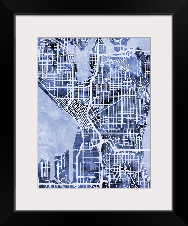 Maps Art Maps Maps by City Street Maps Painting Washington Seattle Michael Tompsett Watercolor
