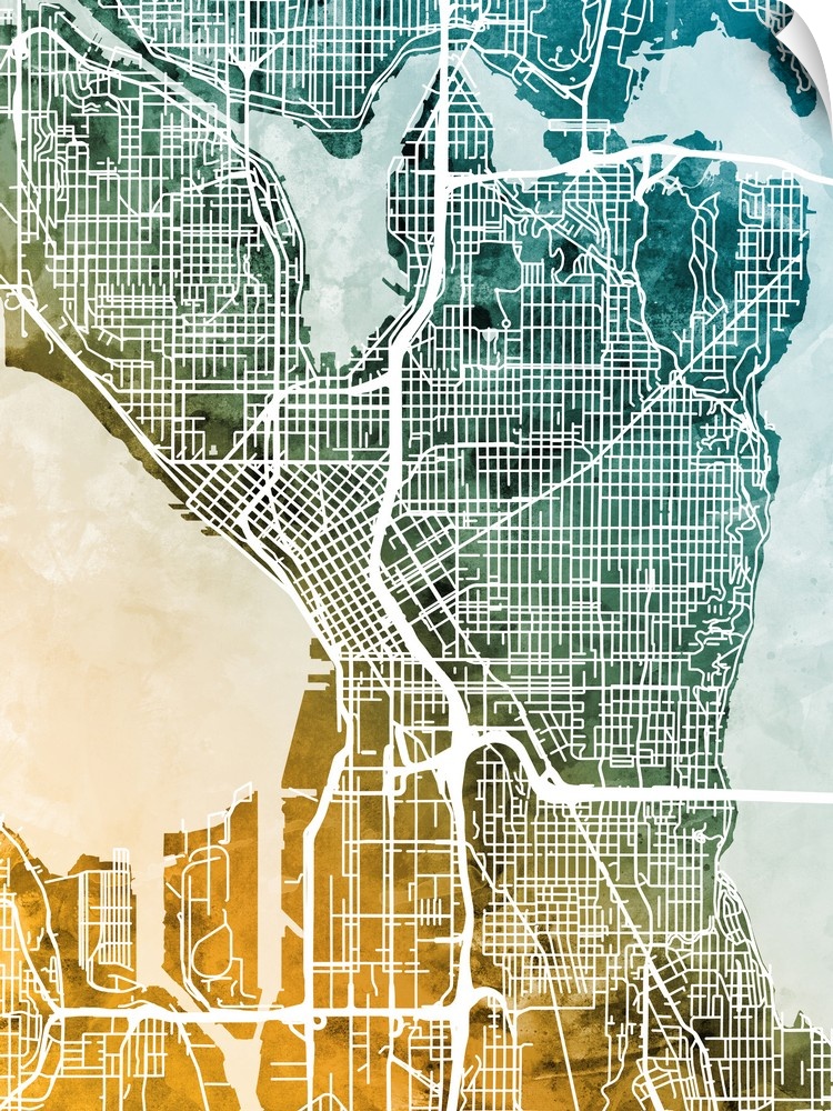 <p>Watercolor street map of Seattle, Washington, United States</p>