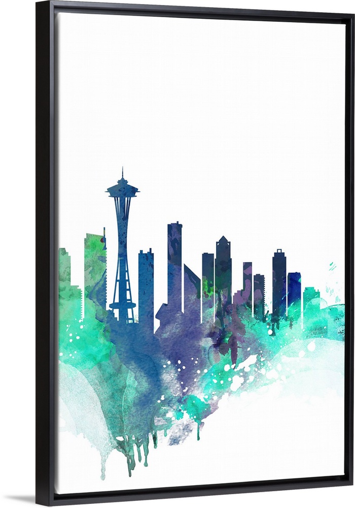 <p>The Seattle city skyline in colorful watercolor splashes.</p>