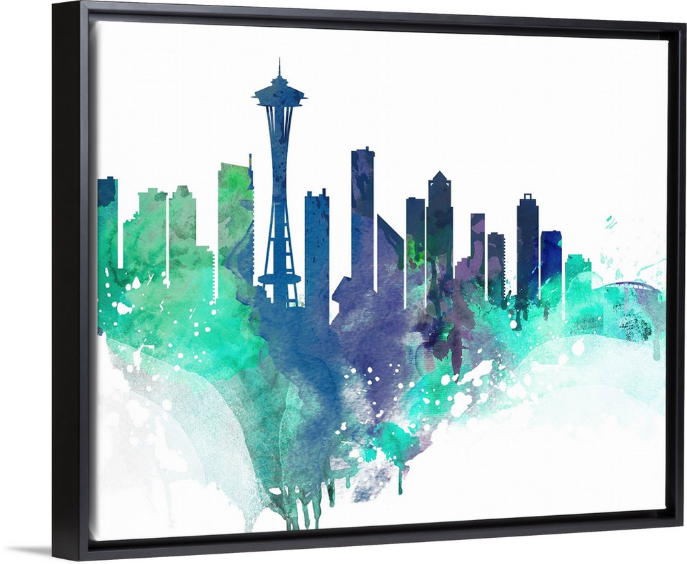 <p>The Seattle city skyline in colorful watercolor splashes.</p>