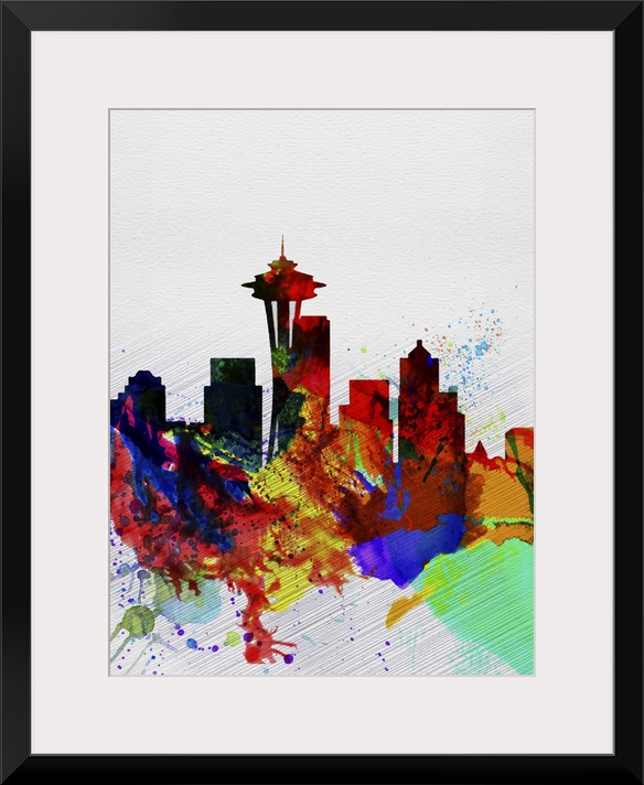 Art City Skylines Painting Washington Seattle Naxart Studio Watercolor