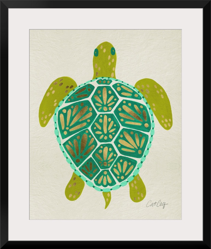 Art Cat Coquillette Decorative Art Green Wall Art Painting Wildlife Marine Life Turtle
