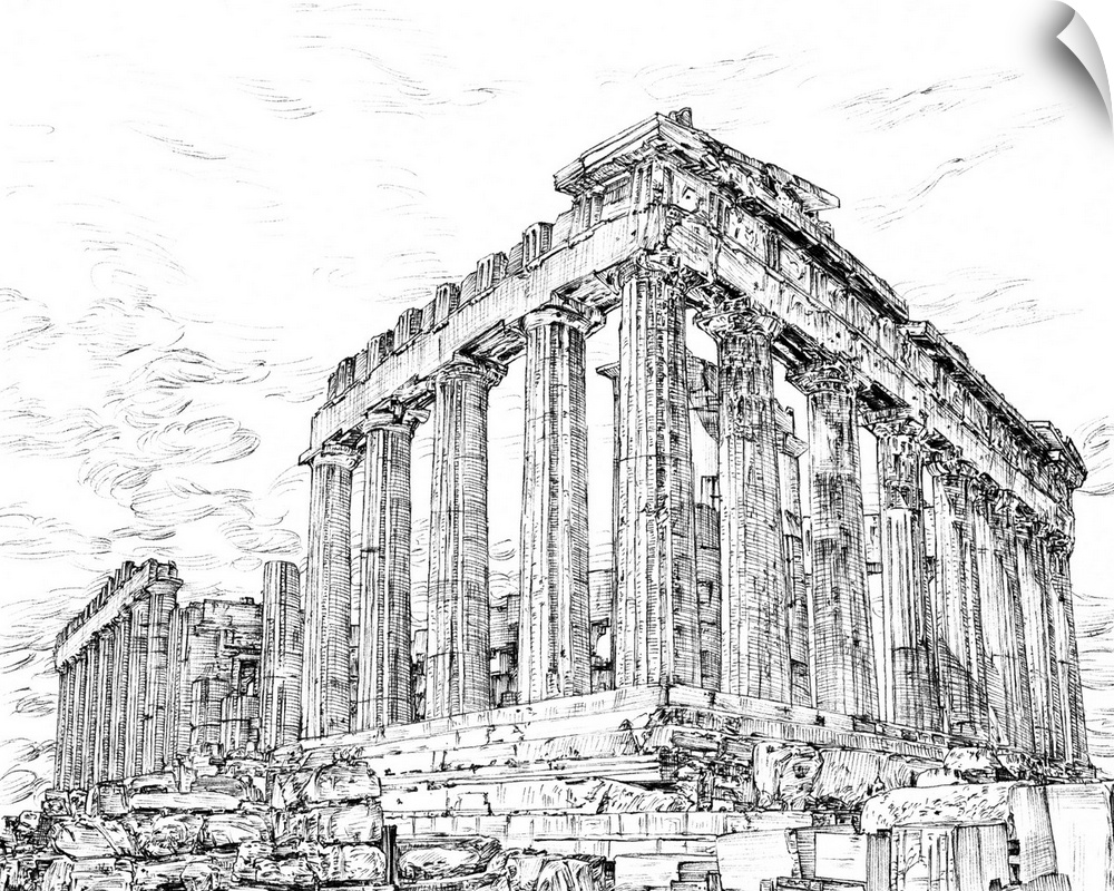 Architecture Art Black and White Wall Art Decorative Art Drawing Greece Athens Melissa Wang