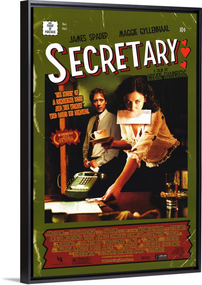 <p>Kinky romantic comedy finds released mental patient Gyllenhaal getting a job as secretary to Spader's buttoned-down businessman who, it turns out, likes spanking and leather. His secretary is only too happy to comply. Not yet reviewed.</p>
