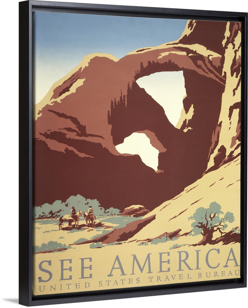 <p>See America. Poster for the United States Travel Bureau promoting tourism, showing two cowboys on horseback by stream near desert rock formation. Library of Congress, Prints and Photographs Division, WPA Poster Collection.</p>