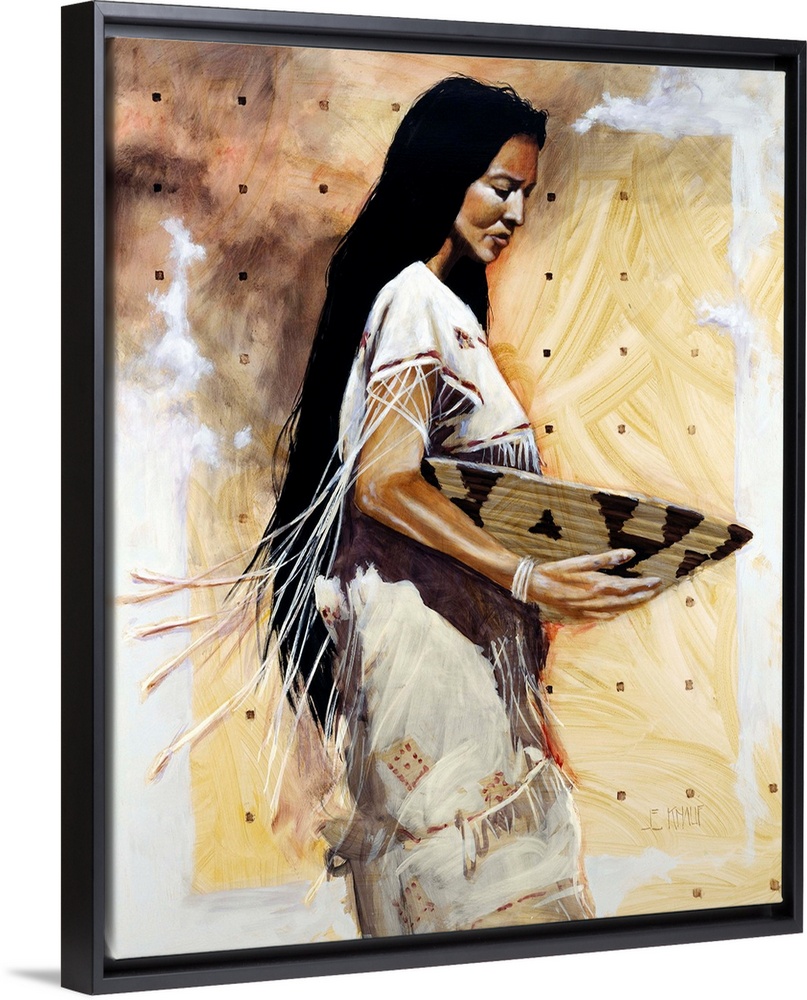 <p>Contemporary western theme painting of a traditionally dressed native American woman.</p>