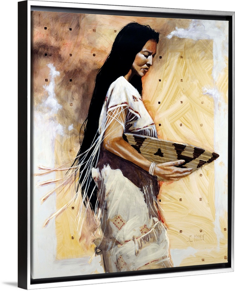<p>Contemporary western theme painting of a traditionally dressed native American woman.</p>
