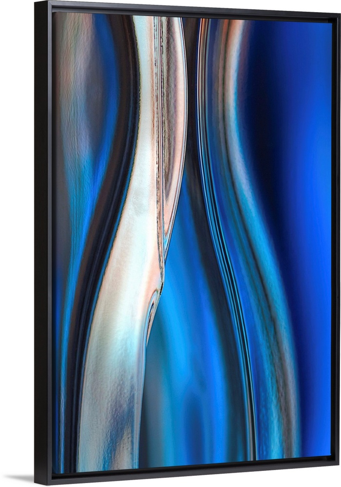 <p>Contemporary abstract photograph of curved linear lines in shades of blue.</p>
