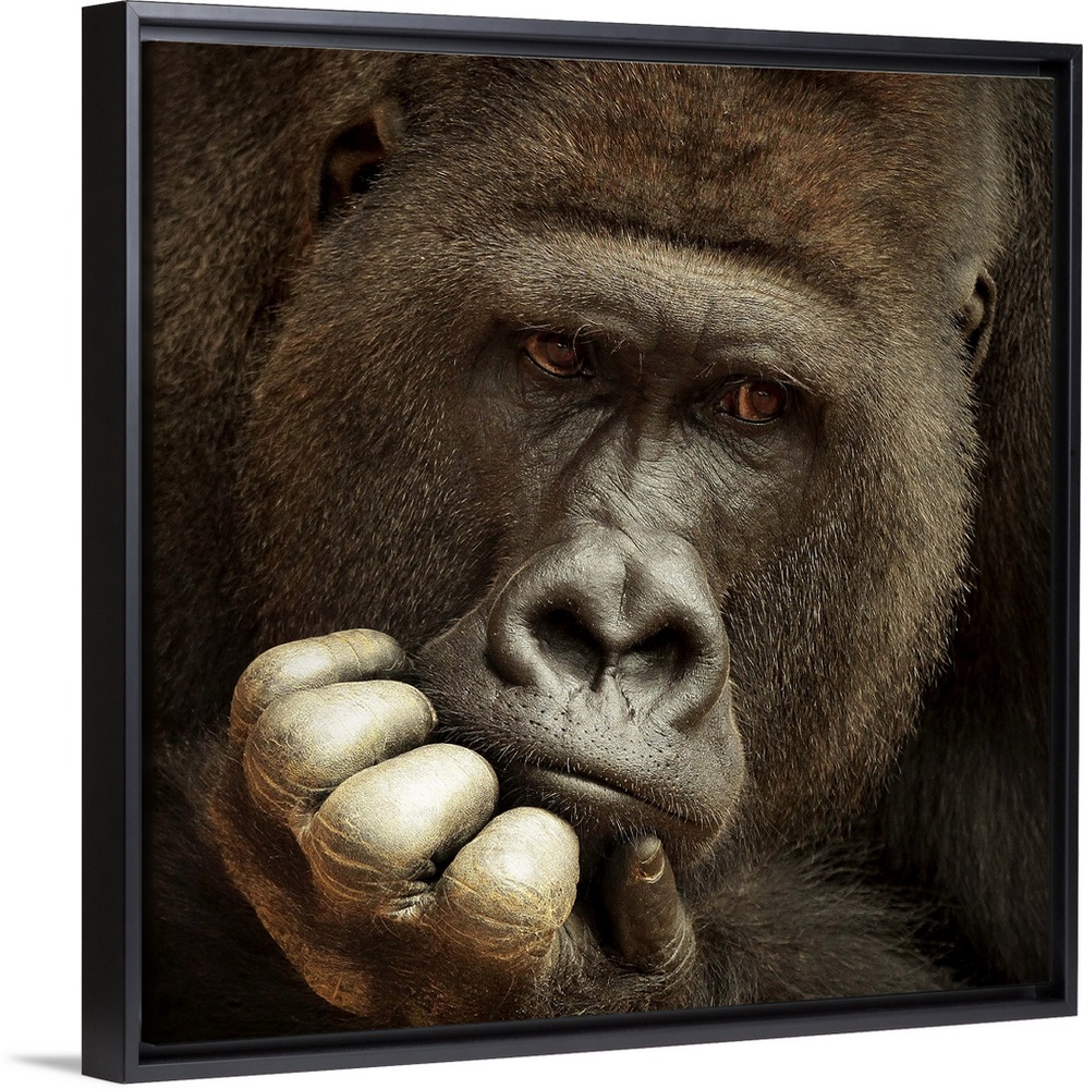 <p>Portrait of a gorilla with its hand on its chin looking at something thought.</p>