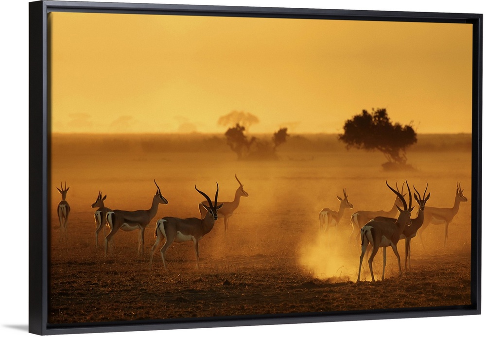 <p>Silhouetted antelopes on the African Savannah.</p>