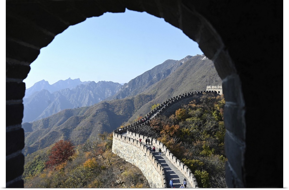 <p>View through sentry post window, Great Wall of China, built 1368, Mutianyu section, UNESCO World Heritage Site, Beijing, China, Asia</p>