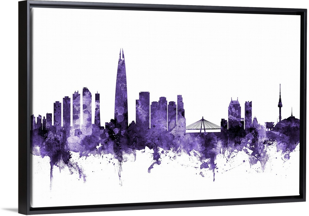 <p>Watercolor art print of the skyline of Seoul, South Korea</p>