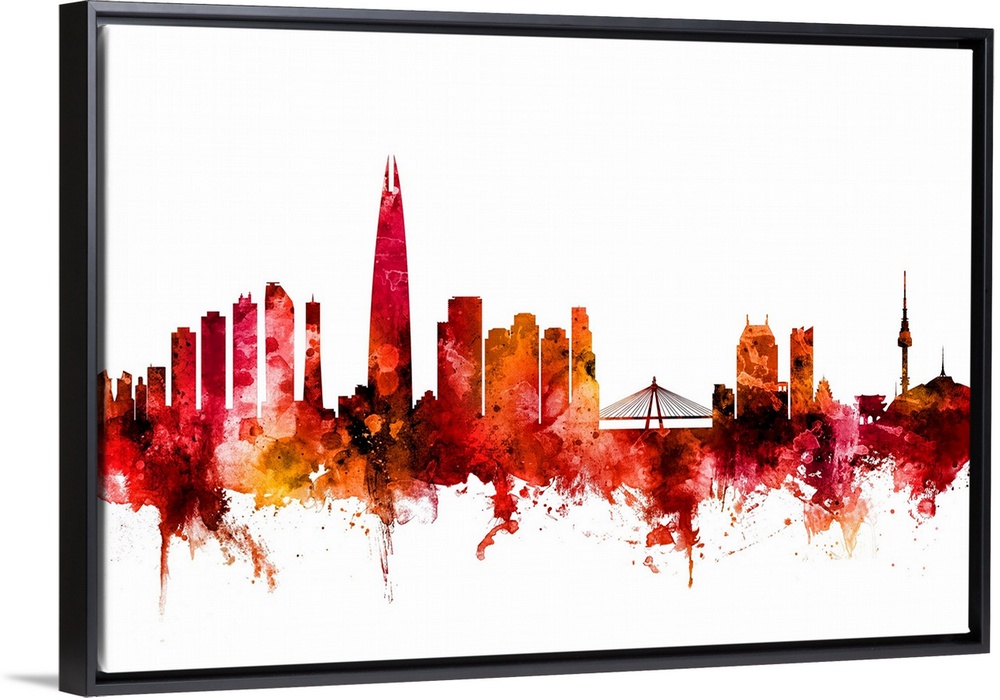 <p>Watercolor art print of the skyline of Seoul, South Korea.</p>