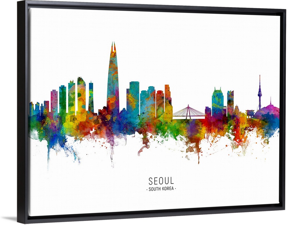 <p>Watercolor art print of the skyline of Seoul, South Korea.</p>