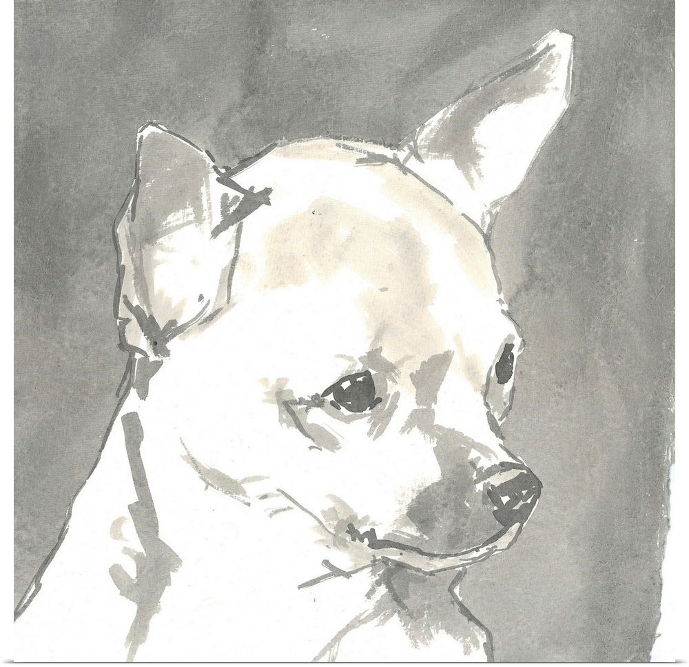 Art Decorative Art Grey Wall Art Painting Watercolor Wildlife Dog Chihuahua
