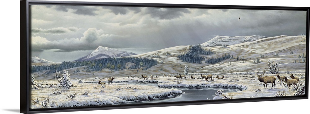 Art Contemporary Art Landscapes Rivers, Lakes, and Oceans Wildlife Wilhelm Goebel Landscapes Mountains River, Creek and Stream Snowscapes Painting Wildlife Moose and Elk