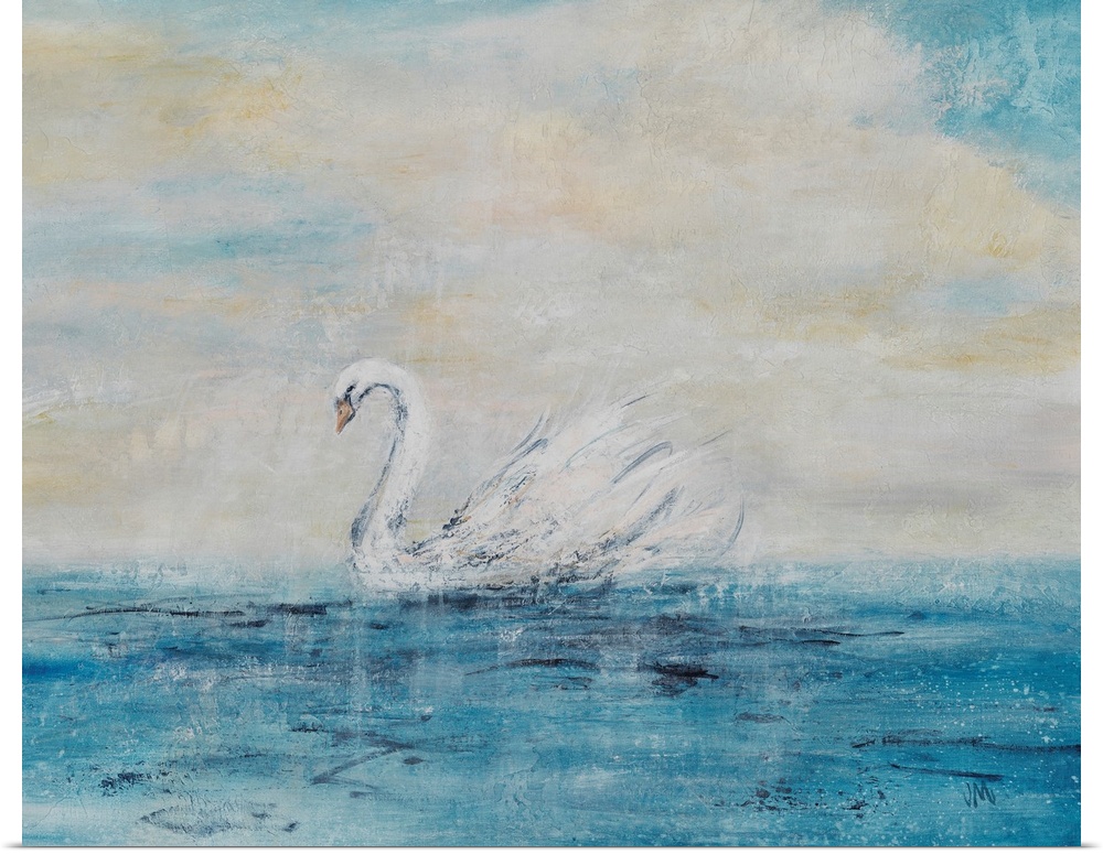 Art Transitional Blue Wall Art Contemporary Art Lake Seascapes Jodi Maas Painting Wildlife Bird Swan