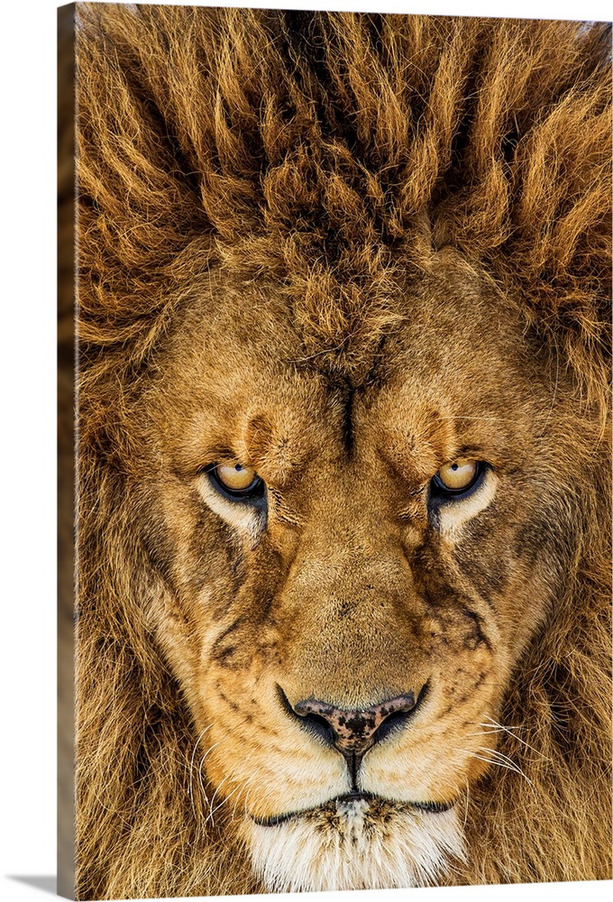 <p>A male lion with a stern look in his eyes.</p>