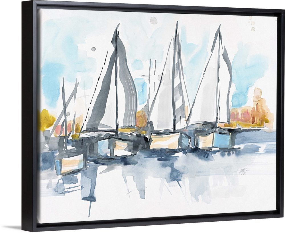 Art Beach House Décor Contemporary Art Painting Megan Swartz Transportation Boat Sailboat Watercolor