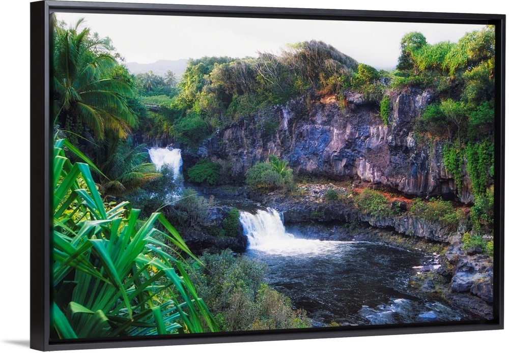 <p>High angle view of the Waterfalls of the Seven Sacred Pools, Hana Road, Maui, Hawaii.</p>