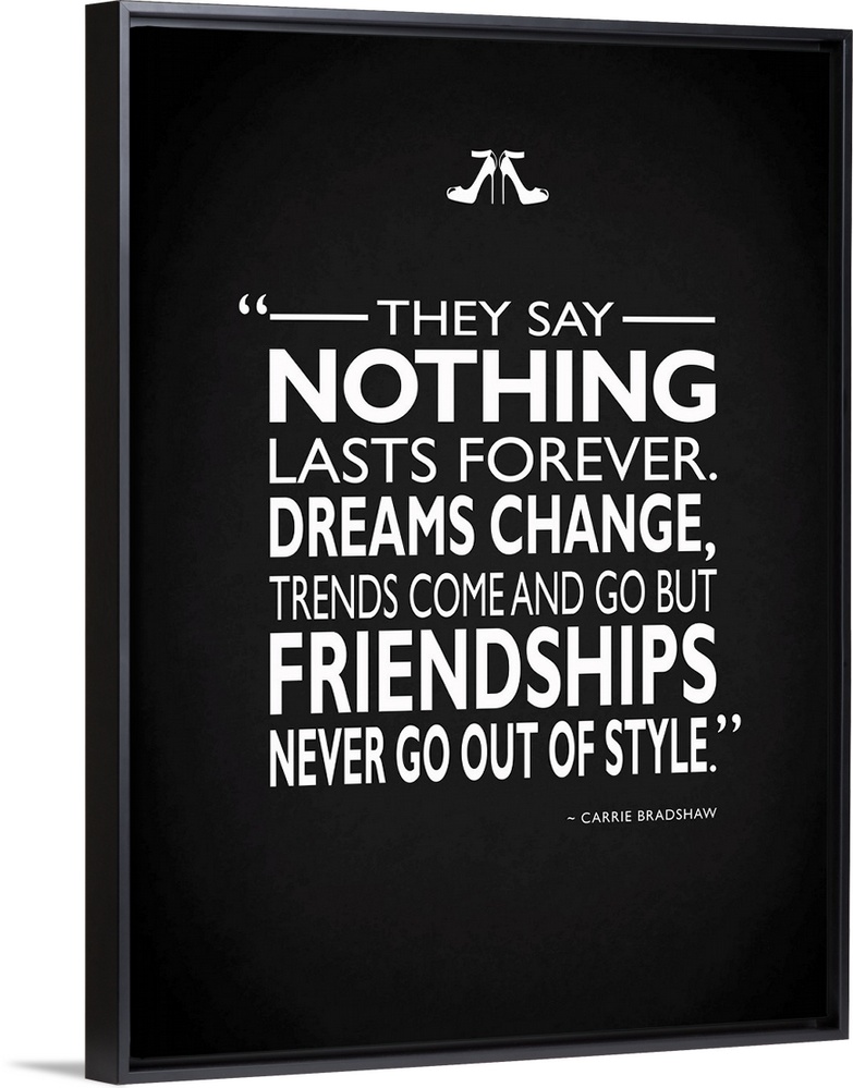 <p>"They say nothing lasts forever. Dreams change, trends come and go but friendships never go out of style." -Carrie Bradshaw</p>