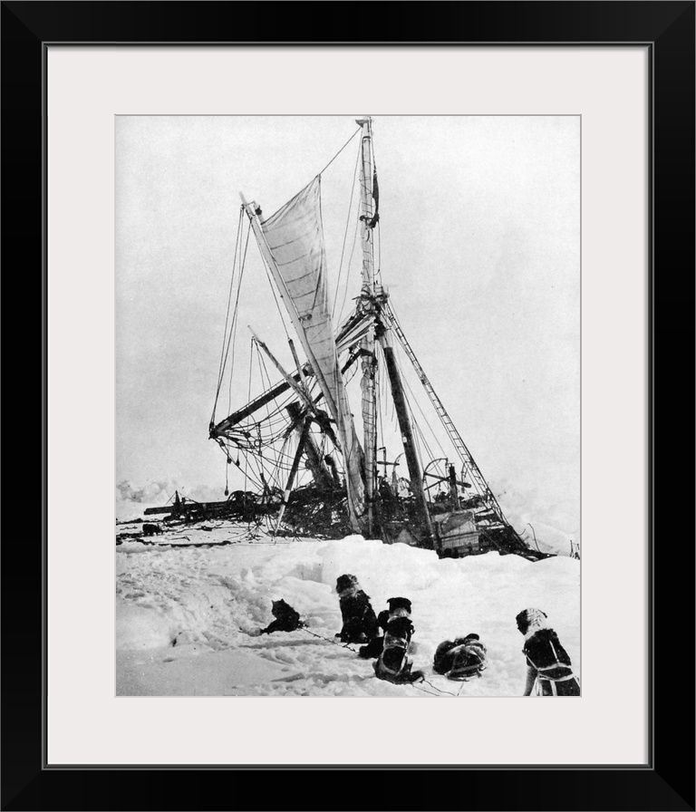 <p>Sinking in the ice of the Weddell Sea of Antarctica while a sled team looks on, November 1915. Photograph by Frank Hurley.</p>