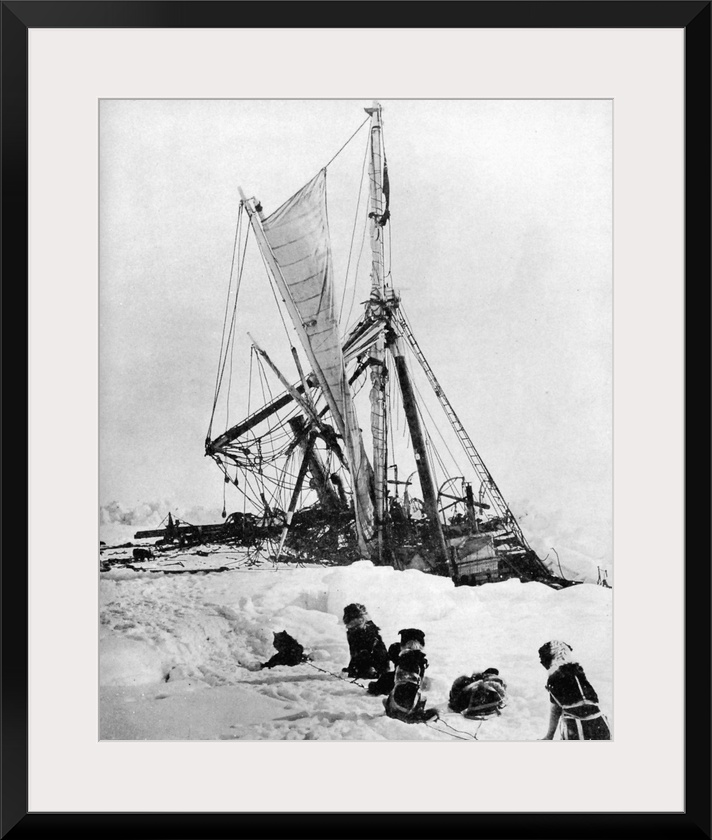 <p>Sinking in the ice of the Weddell Sea of Antarctica while a sled team looks on, November 1915. Photograph by Frank Hurley.</p>