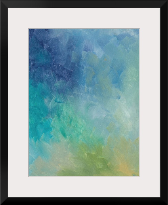 <p>Abstract painting in teal and blue shades blending softly together.</p>