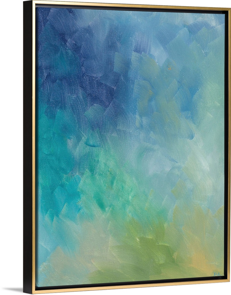 <p>Abstract painting in teal and blue shades blending softly together.</p>