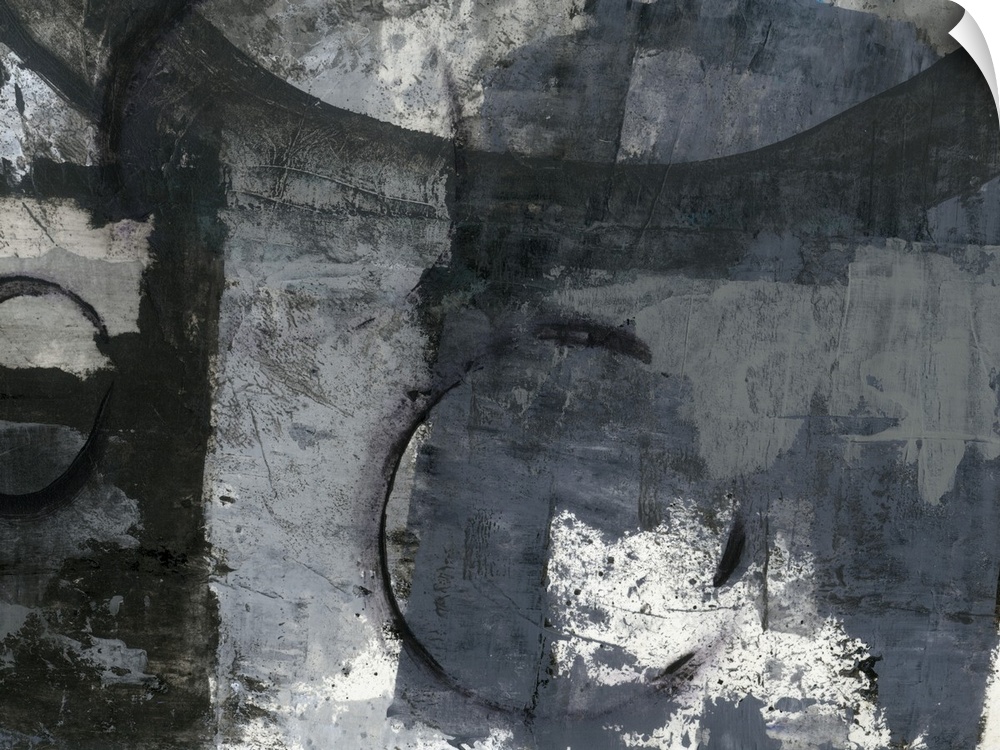<p>A contemporary abstract painting using shades of gray and weathered textures.</p>