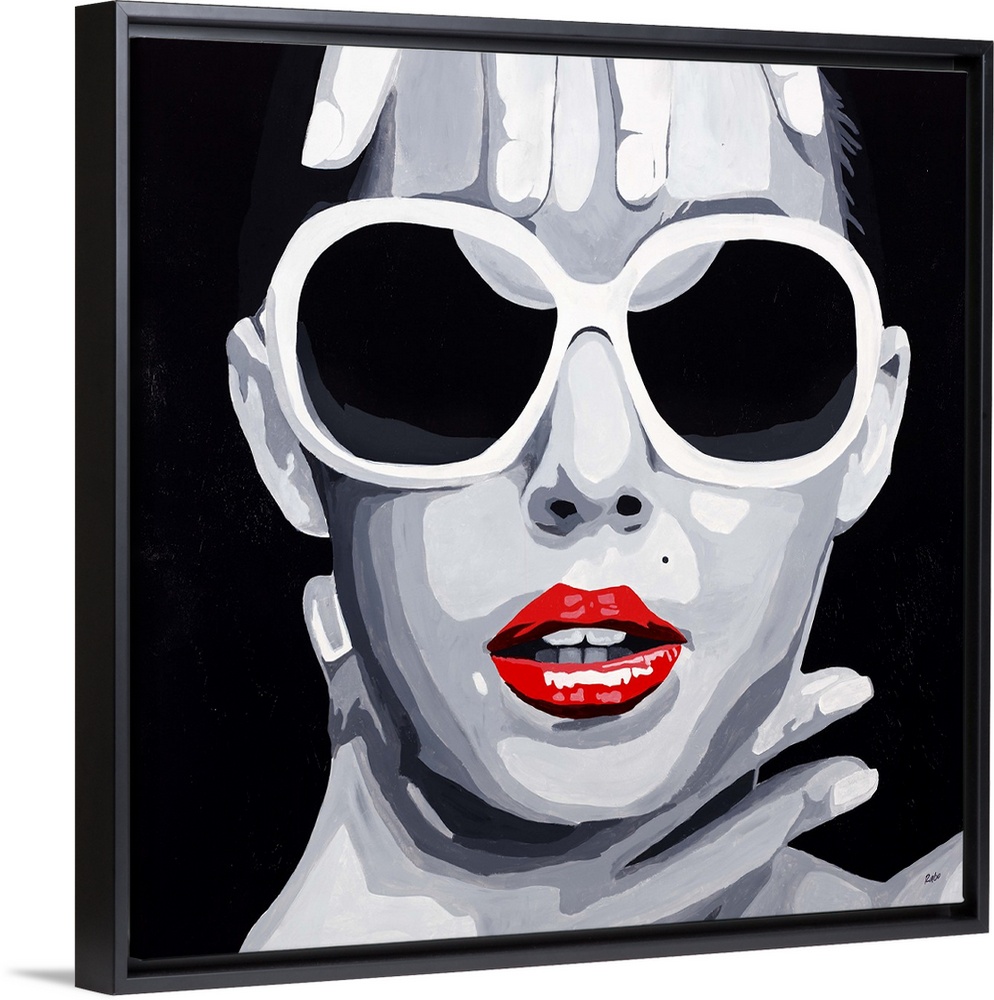 <p>Contemporary pop artwork of a woman's face with large sunglasses, framed by her hands.</p>