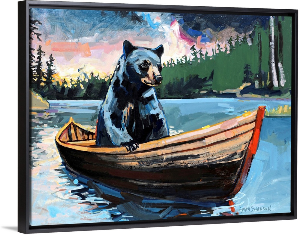 Art Eclectic Blue Wall Art Contemporary Art Painting Adam Swanson Transportation Boat Rowboat Wildlife Bear Black Bear
