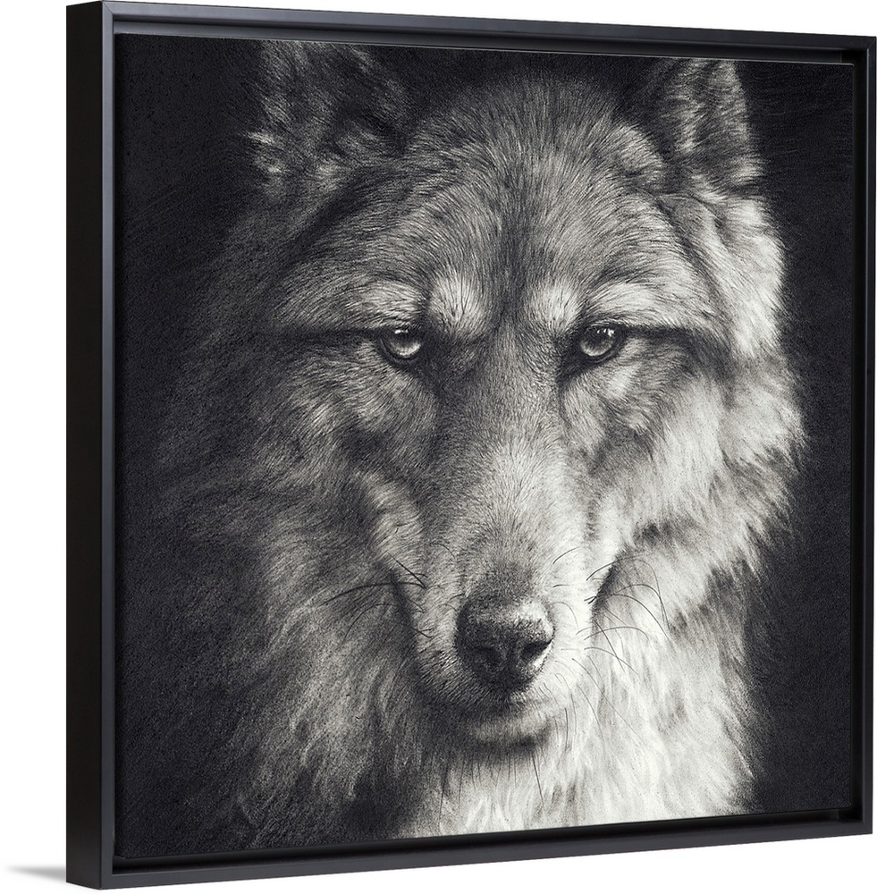<p>'Shadow Falling' is a graphite pencil drawing. A close up portrait of a timber wolf.</p>