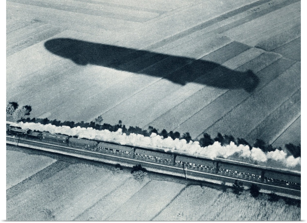 <p>Shadow Of The Fast Zeppelin Air Ship Schwaben Keeping Pace With An Express Train. From The Illustrated War News, 1915.</p>