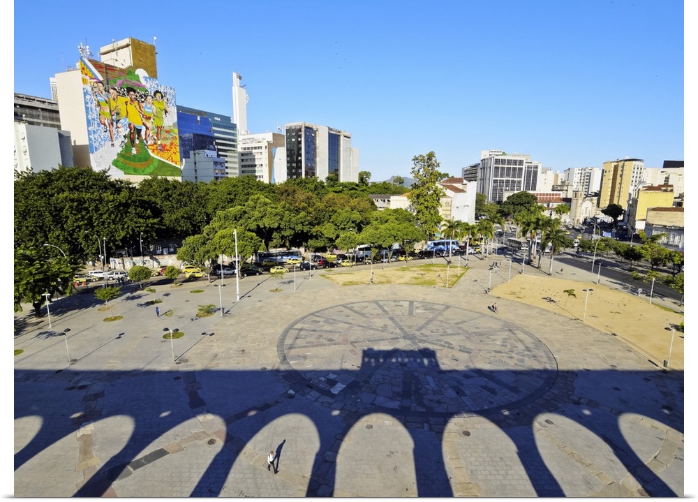 <p>Brazil, City of Rio de Janeiro, Lapa, Shadow of the Tram crossing the Carioca Aqueduct casted on Largo da Lapa.</p>