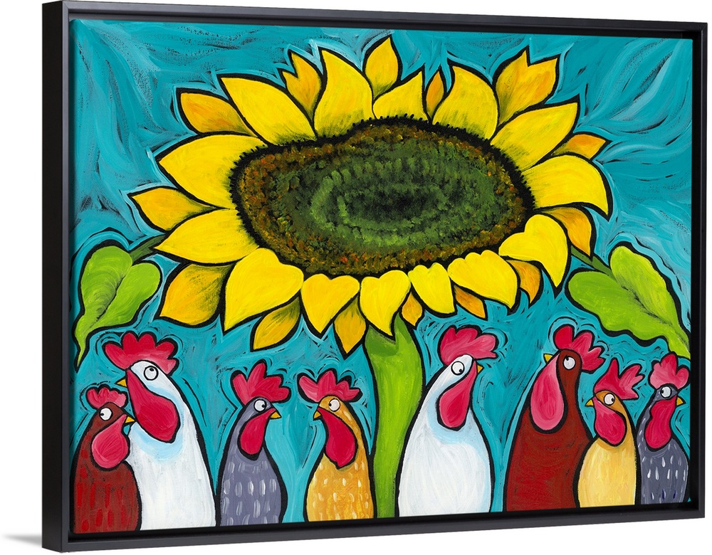 Art Blue Wall Art Contemporary Art Florals Sunflower Ben Mann Painting Wildlife Bird Chicken