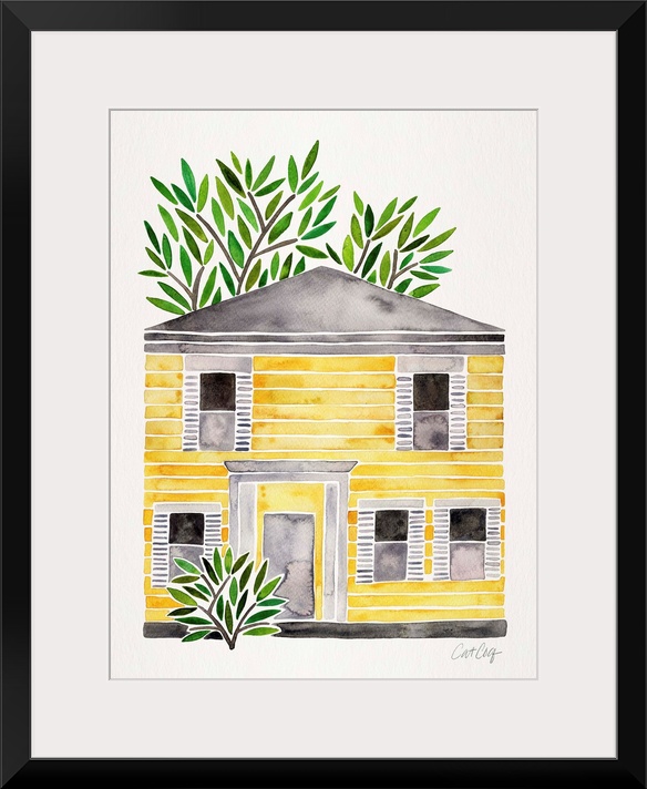 Architecture Houses Art Cat Coquillette Decorative Art Painting Watercolor Yellow Wall Art