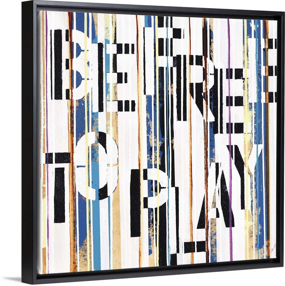 <p>Contemporary artwork with the text "be free to play" hidden in vertical stripes.</p>
