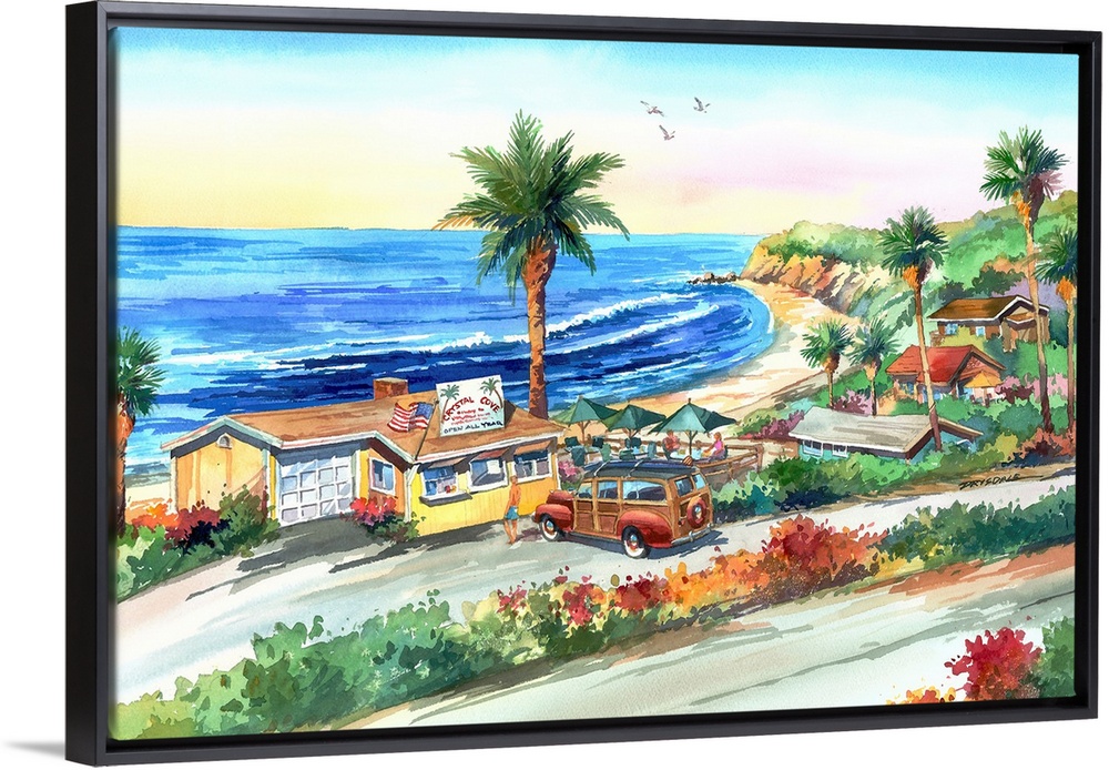 Art Decorative Art Bill Drysdale Landscapes Beaches Painting California Transportation Car Classic and Vintage Cars Tropical Watercolor