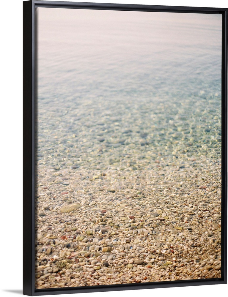 <p>Photograph of shallow ocean water on a pebble beach, Corfu, Greece.</p>
