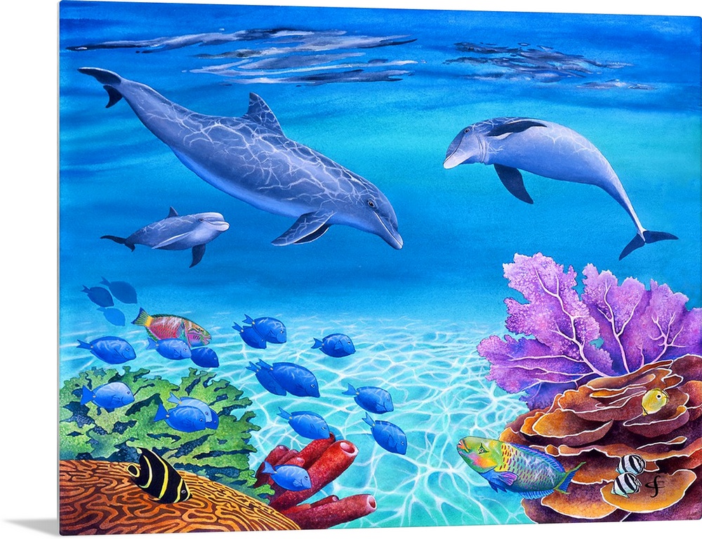Art Blue Wall Art Contemporary Art Wildlife Painting Carolyn Steele Watercolor Wildlife Marine Life Dolphin