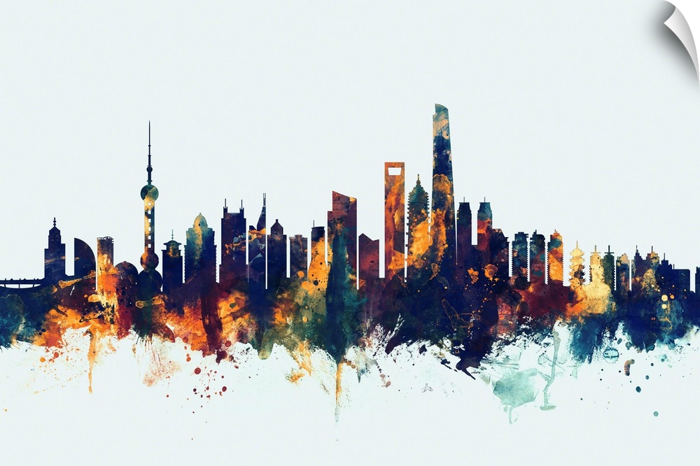 <p>Watercolor art print of the skyline of Shanghai, China</p>